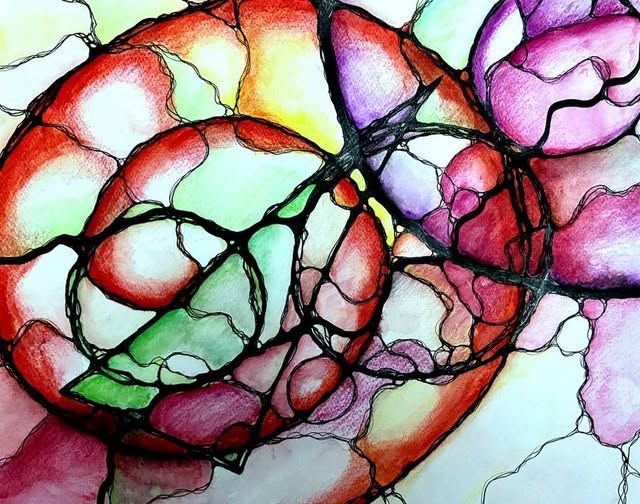 Kreise entstehen, Linien verbinden sich. Die Zeichnung entwickelt sich scheinbar von selbst, während ich meinen inneren Impulsen folge. Genau darin liegt für mich die Kraft dieser Methode: Ich greife nicht steuernd ein, sondern lasse entstehen.
